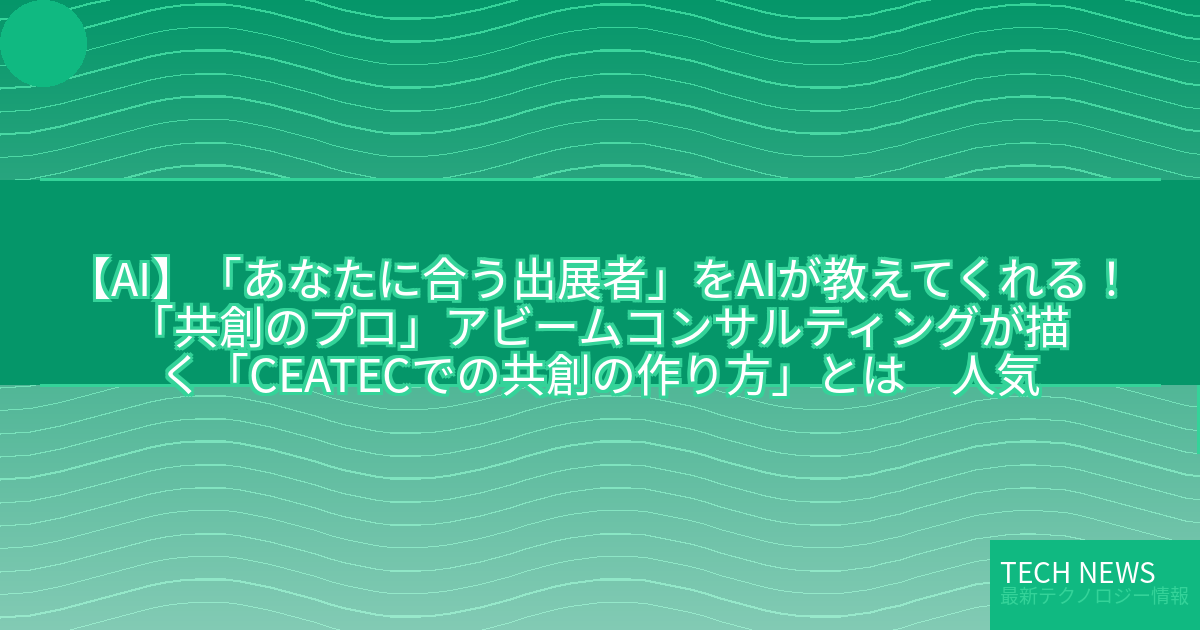 ・元記事タイトル:「あなたに合う出展者」をAIが教えてくれる!「共創のプロ」アビームコンサルティングが描く「CEATECでの共創の作り方」とは 人気の「共創体験ツアー」は今年も実施、AI×コンサルタントの組み合わせも
