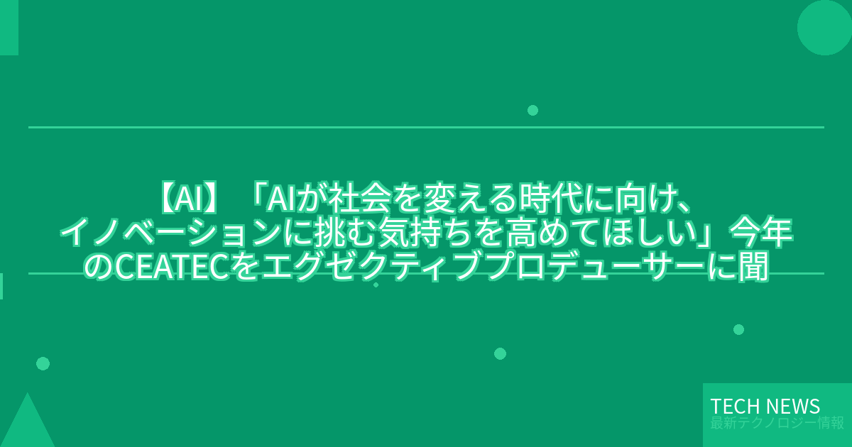 ・元記事タイトル:「AIが社会を変える時代に向け、イノベーションに挑む気持ちを高めてほしい」今年のCEATECをエグゼクティブプロデューサーに聞く AI関連出展は過去最多、AIでCEATEC自体を活用する企画も