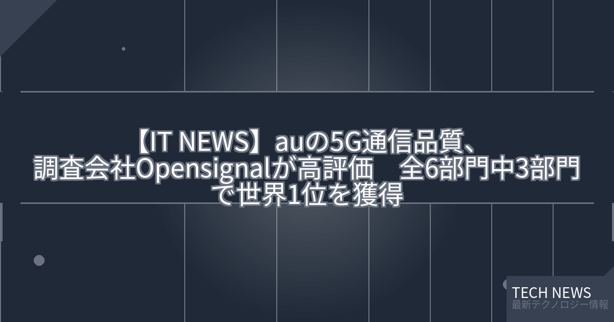KDDIと沖縄セルラーは、auの5Gサービスが調査会社Opensignal社の「5Gグローバル・モバイル・ネットワーク・エクスペリエンス・アワード2025」において、全6部門中3部門で世界1位を獲得したと発表しました。