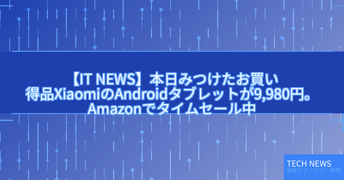 【IT NEWS】本日みつけたお買い得品XiaomiのAndroidタブレットが9,980円。Amazonでタイムセール中