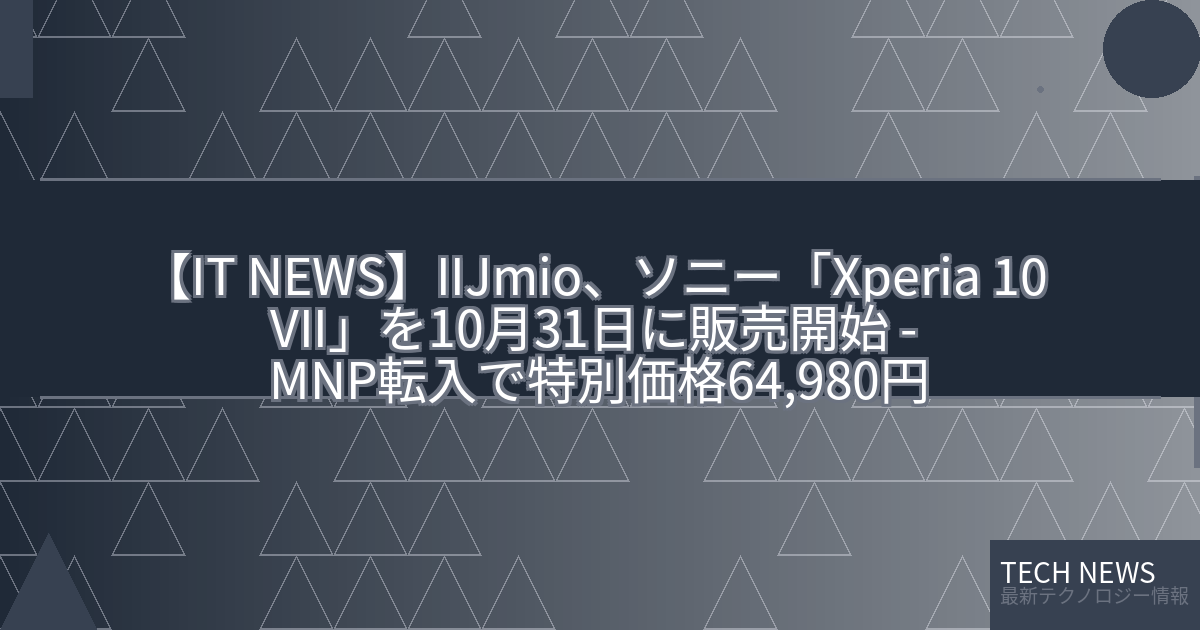 記事タイトル:IIJmio、ソニー「Xperia 10 VII」を10月31日に販売開始 – MNP転入で特別価格64,980円