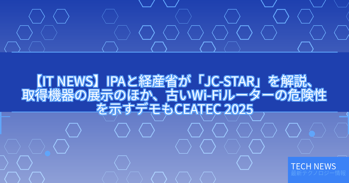 ・元記事タイトル:IPAと経産省が「JC-STAR」を解説、取得機器の展示のほか、古いWi-Fiルーターの危険性を示すデモも【CEATEC 2025】