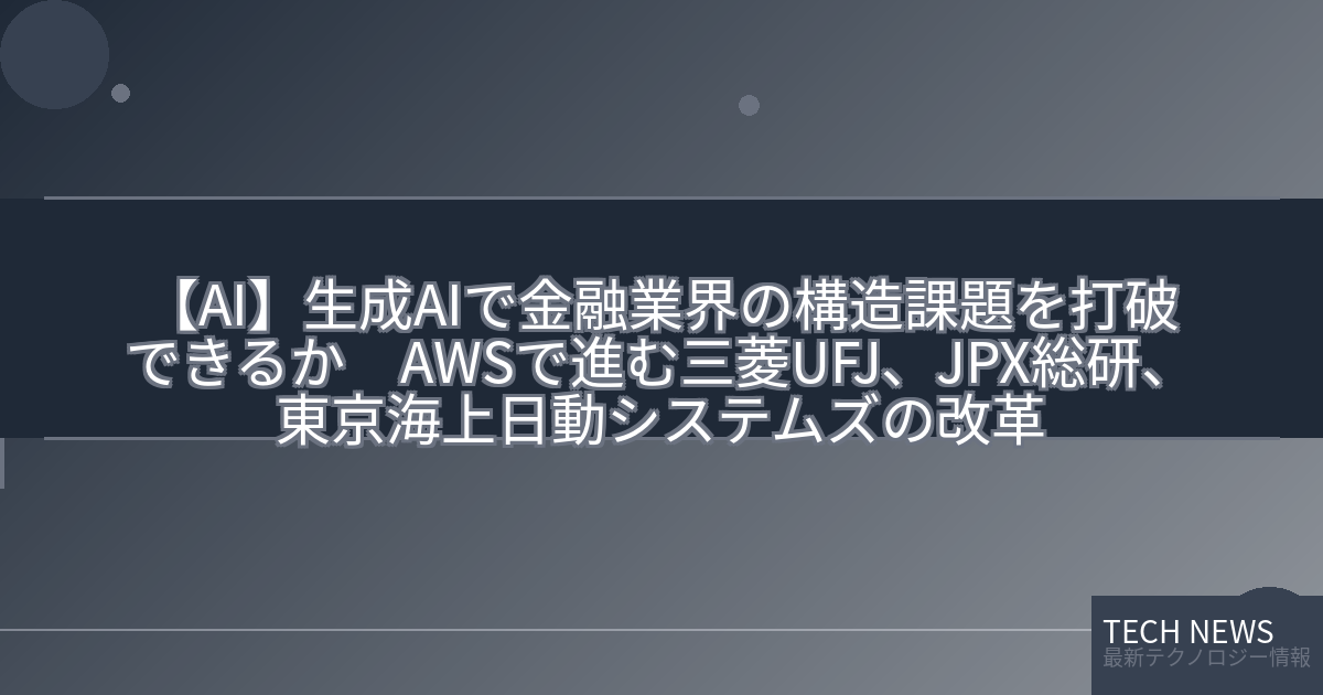 記事タイトル:生成AIで金融業界の構造課題を打破できるか AWSで進む三菱UFJ、JPX総研、東京海上日動システムズの改革