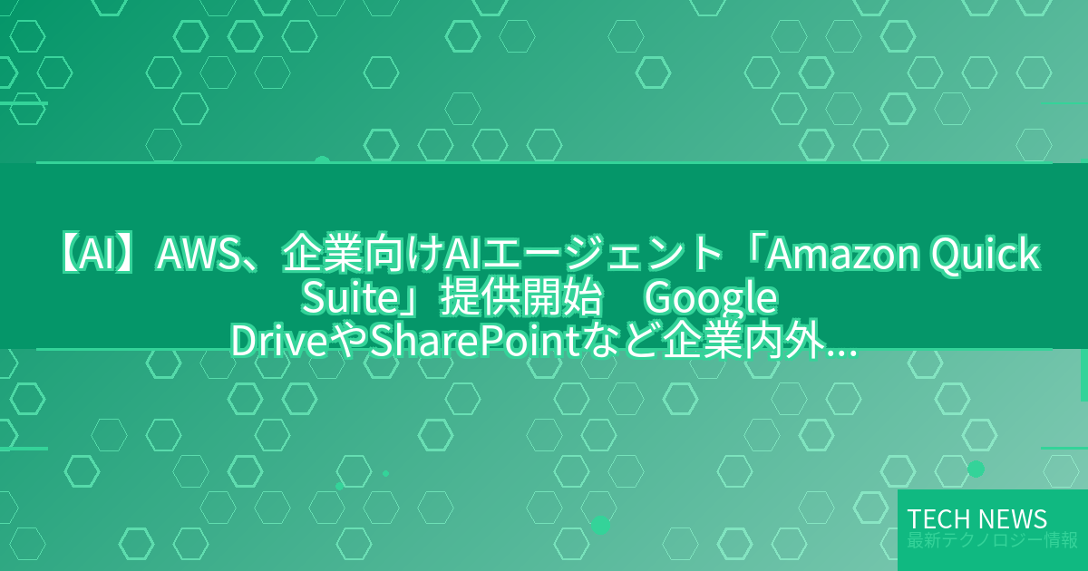 ・元記事タイトル:AWS、企業向けAIエージェント「Amazon Quick Suite」提供開始 Google DriveやSharePointなど企業内外のデータソースに接続、分析や自動処理など可能に