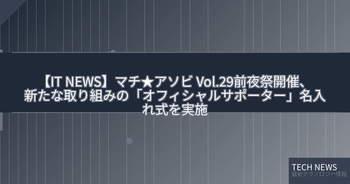記事タイトル:マチ★アソビ Vol.29前夜祭開催、新たな取り組みの「オフィシャルサポーター」名入れ式を実施