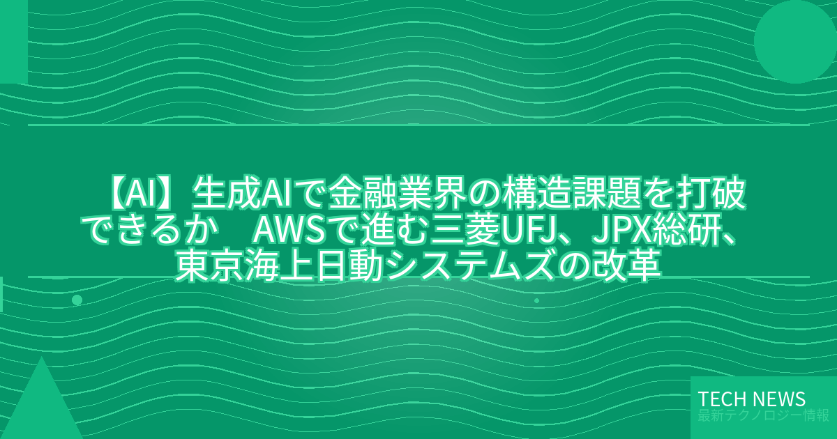 記事タイトル:生成AIで金融業界の構造課題を打破できるか AWSで進む三菱UFJ、JPX総研、東京海上日動システムズの改革