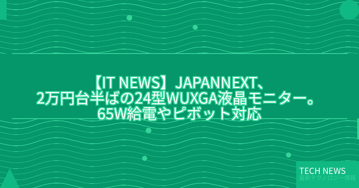 記事タイトル:JAPANNEXT、2万円台半ばの24型WUXGA液晶モニター。65W給電やピボット対応