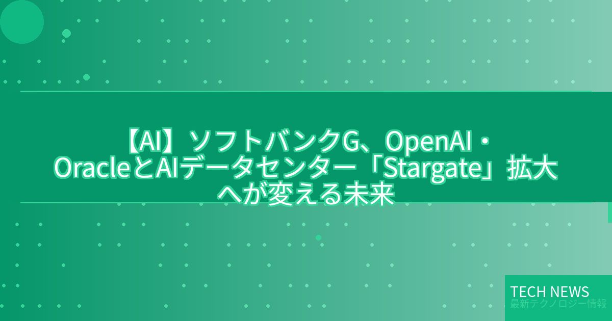 記事タイトル:ソフトバンクG、OpenAI・OracleとAIデータセンター「Stargate」拡大へ