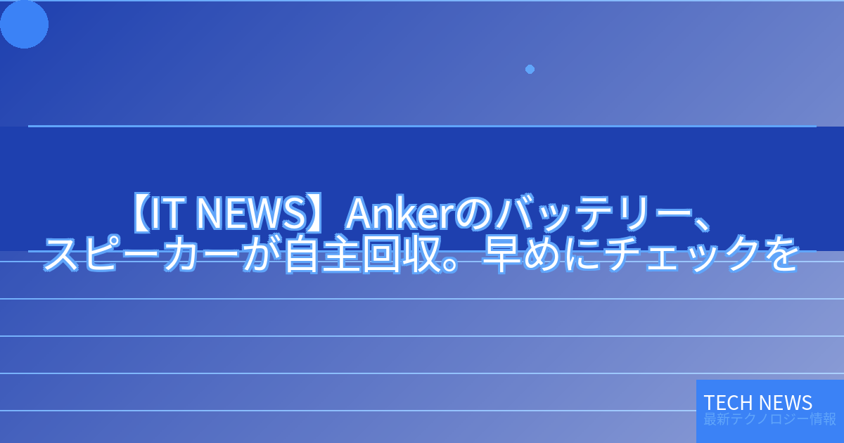 【IT NEWS】Ankerのバッテリー、スピーカーが自主回収。早めにチェックを