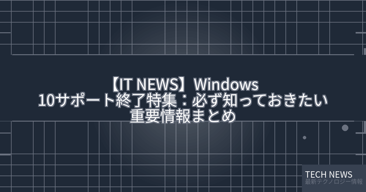 【IT NEWS】Windows 10サポート終了特集:必ず知っておきたい重要情報まとめ