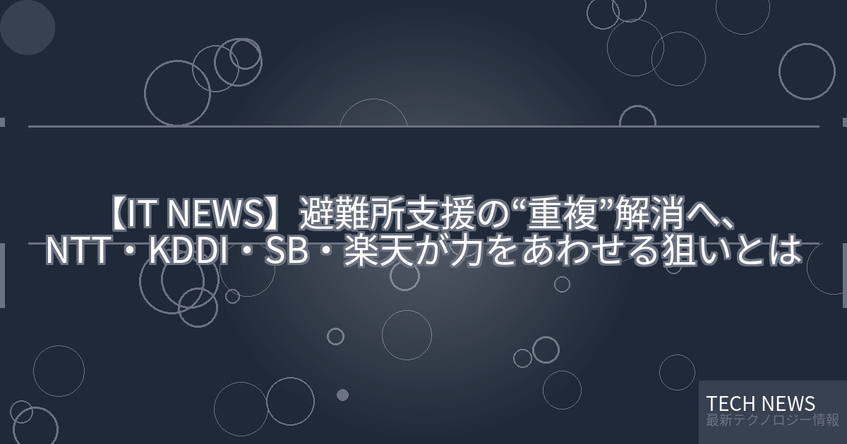 記事タイトル:避難所支援の“重複”解消へ、NTT・KDDI・SB・楽天が力をあわせる狙いとは