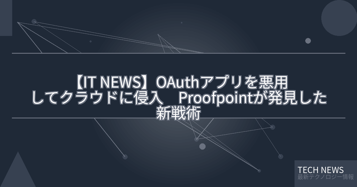 記事タイトル:OAuthアプリを悪用してクラウドに侵入 Proofpointが発見した新戦術
