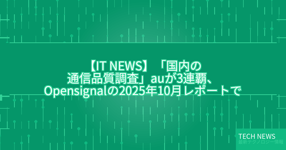 記事タイトル:「国内の通信品質調査」auが3連覇、Opensignalの2025年10月レポートで
