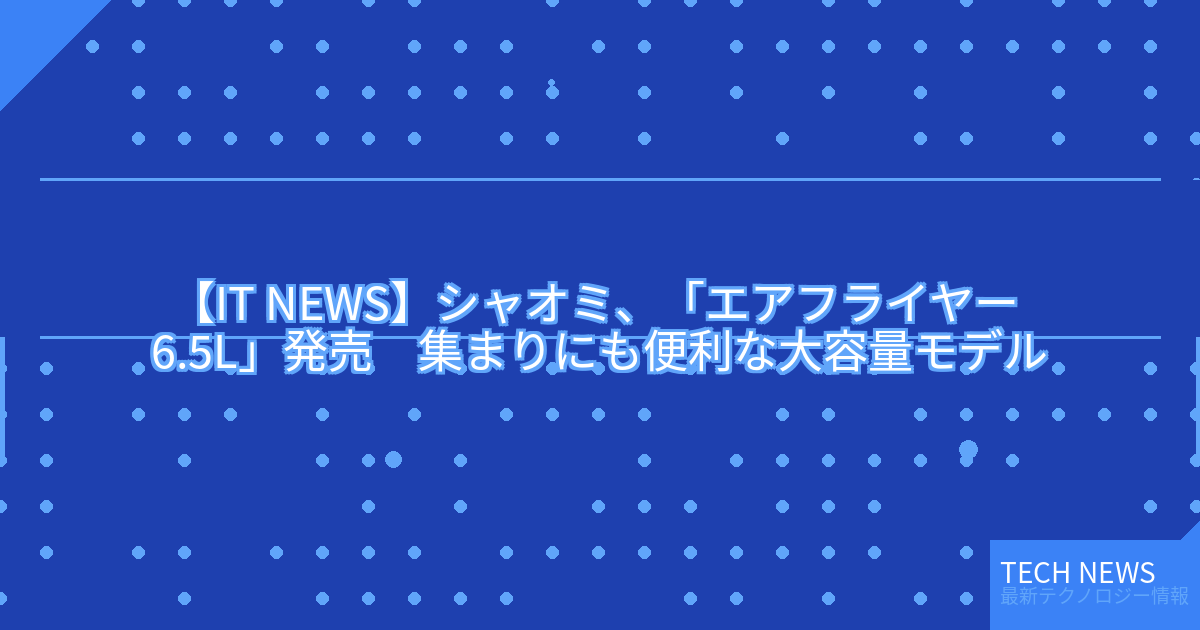 記事タイトル:シャオミ、「エアフライヤー 6.5L」発売 集まりにも便利な大容量モデル