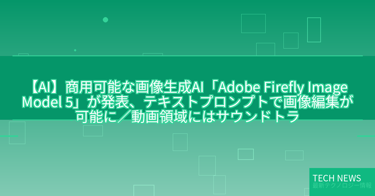 記事タイトル:商用可能な画像生成AI「Adobe Firefly Image Model 5」が発表、テキストプロンプトで画像編集が可能に/動画領域にはサウンドトラックやナレーションを生成できる編集ツールを追加