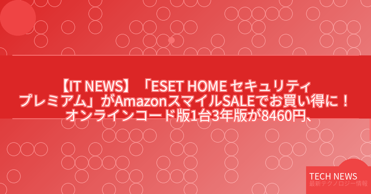 記事タイトル:「ESET HOME セキュリティ プレミアム」がAmazonスマイルSALEでお買い得に! オンラインコード版1台3年版が8460円、5台3年版は1万3050円