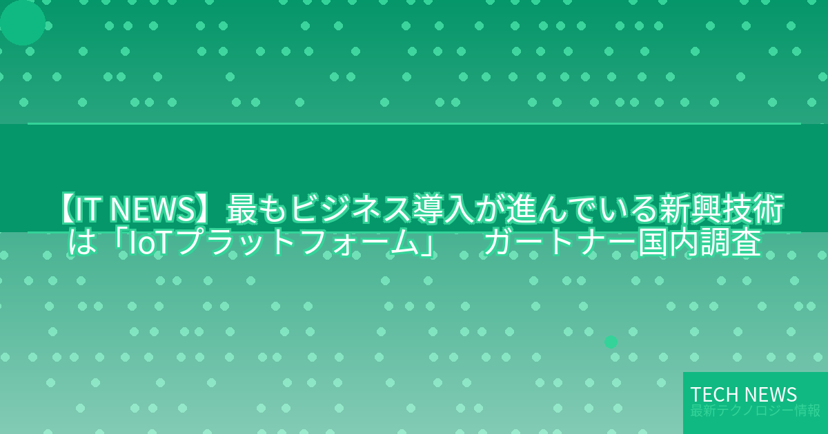 【IT NEWS】最もビジネス導入が進んでいる新興技術は「IoTプラットフォーム」 ガートナー国内調査