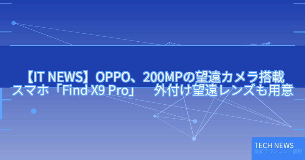 【IT NEWS】OPPO、200MPの望遠カメラ搭載スマホ「Find X9 Pro」 外付け望遠レンズも用意