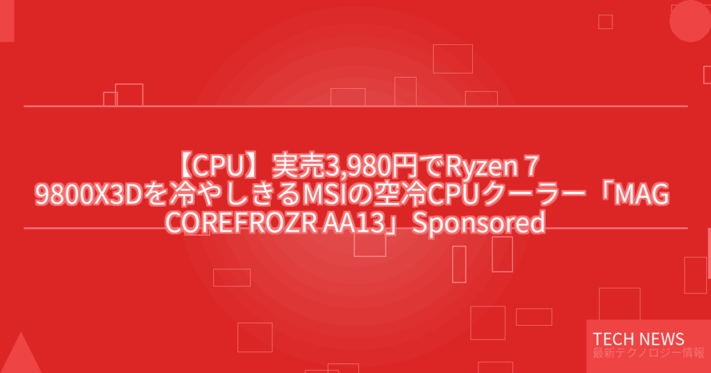 【CPU】実売3,980円でRyzen 7 9800X3Dを冷やしきるMSIの空冷CPUクーラー「MAG COREFROZR AA13」Sponsored