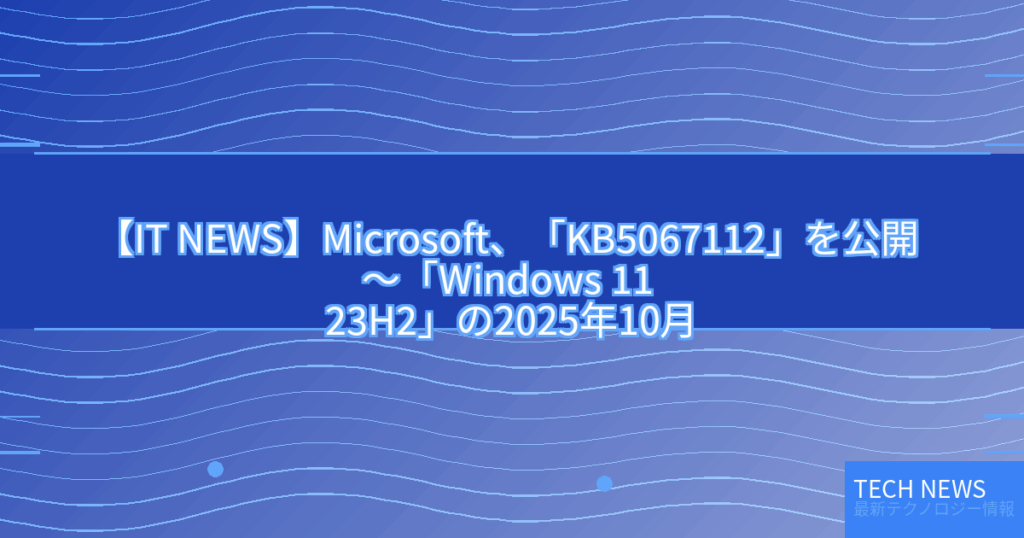 【IT NEWS】Microsoft、「KB5067112」を公開 ~「Windows 11 23H2」の2025年10月プレビューパッチ/タッチキーボードや外部仮想スイッチの問題を解決