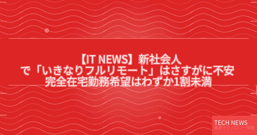 【IT NEWS】新社会人で「いきなりフルリモート」はさすがに不安 完全在宅勤務希望はわずか1割未満