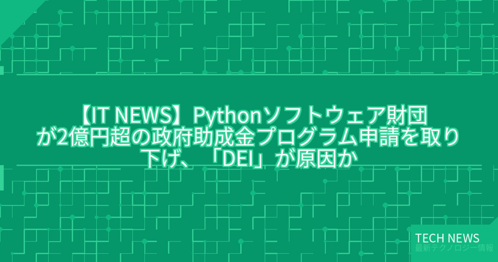 【IT NEWS】Pythonソフトウェア財団が2億円超の政府助成金プログラム申請を取り下げ、「DEI」が原因か
