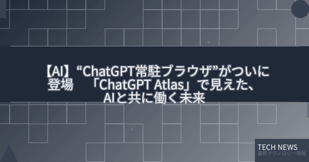 【AI】“ChatGPT常駐ブラウザ”がついに登場 「ChatGPT Atlas」で見えた、AIと共に働く未来