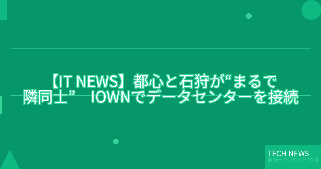 【IT NEWS】都心と石狩が“まるで隣同士” IOWNでデータセンターを接続