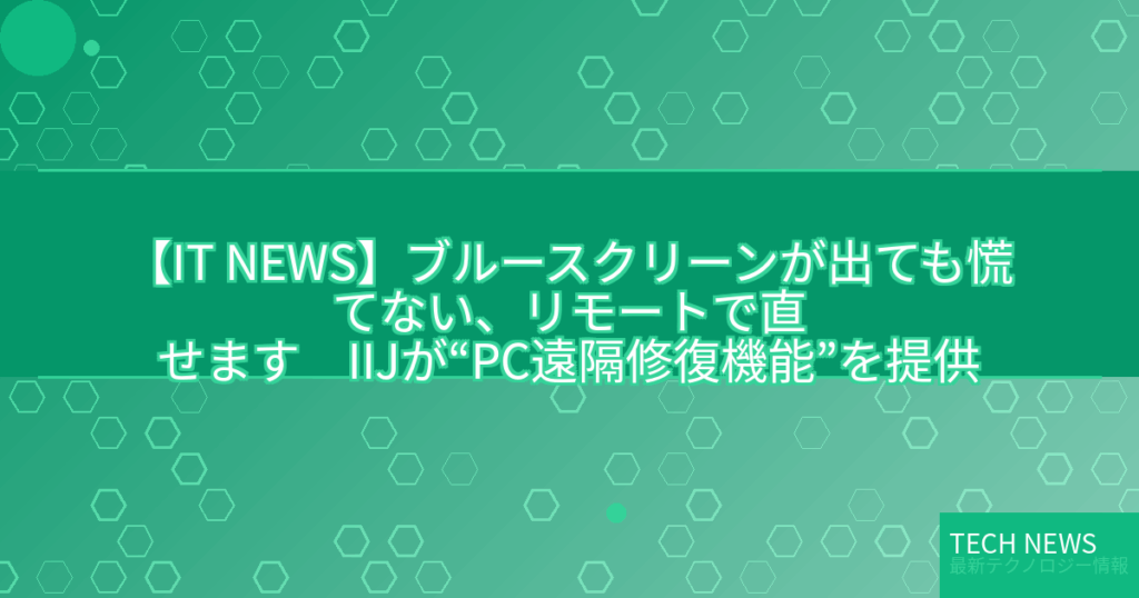【IT NEWS】ブルースクリーンが出ても慌てない、リモートで直せます IIJが“PC遠隔修復機能”を提供