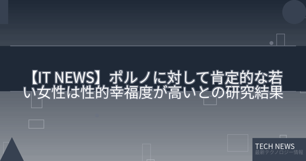 【IT NEWS】ポルノに対して肯定的な若い女性は性的幸福度が高いとの研究結果
