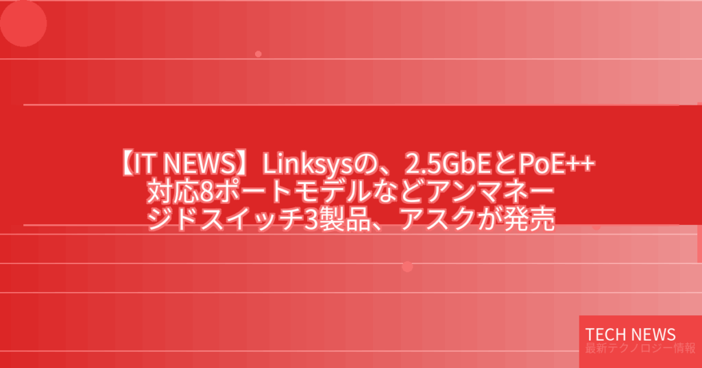 【IT NEWS】Linksysの、2.5GbEとPoE++対応8ポートモデルなどアンマネージドスイッチ3製品、アスクが発売