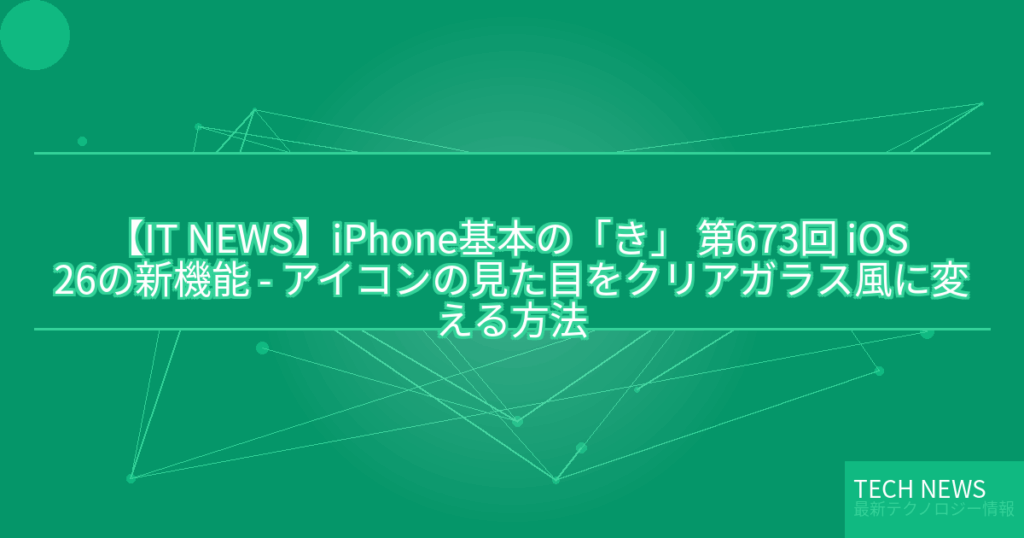 【IT NEWS】iPhone基本の「き」 第673回 iOS 26の新機能 – アイコンの見た目をクリアガラス風に変える方法