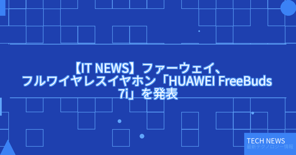 【IT NEWS】ファーウェイ、フルワイヤレスイヤホン「HUAWEI FreeBuds 7i」を発表