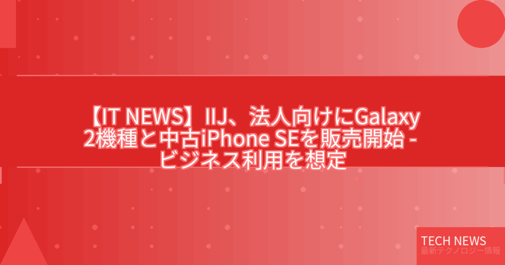 【IT NEWS】IIJ、法人向けにGalaxy 2機種と中古iPhone SEを販売開始 – ビジネス利用を想定