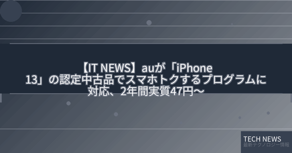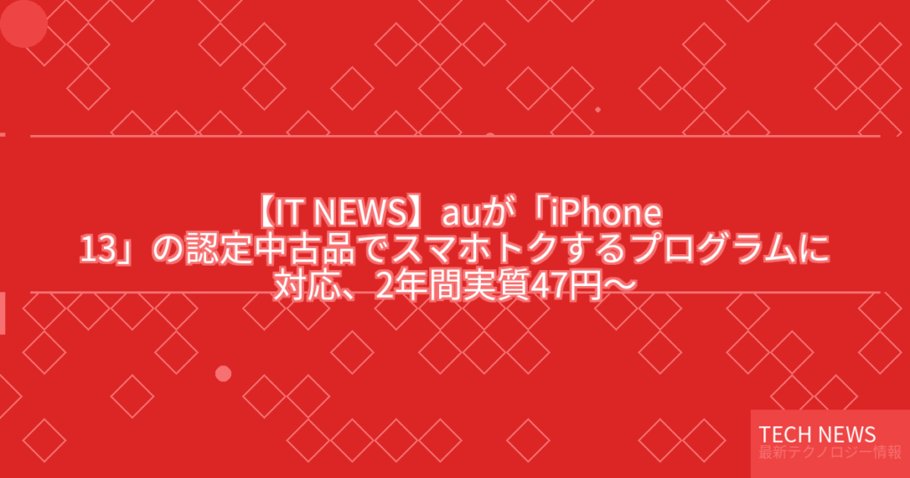 【IT NEWS】auが「iPhone 13」の認定中古品でスマホトクするプログラムに対応、2年間実質47円~