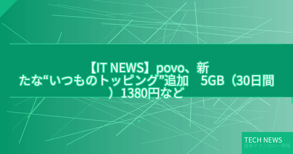 【IT NEWS】povo、新たな“いつものトッピング”追加 5GB(30日間)1380円など