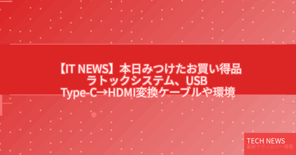 【IT NEWS】本日みつけたお買い得品ラトックシステム、USB Type-C→HDMI変換ケーブルや環境センサーなどをセール中