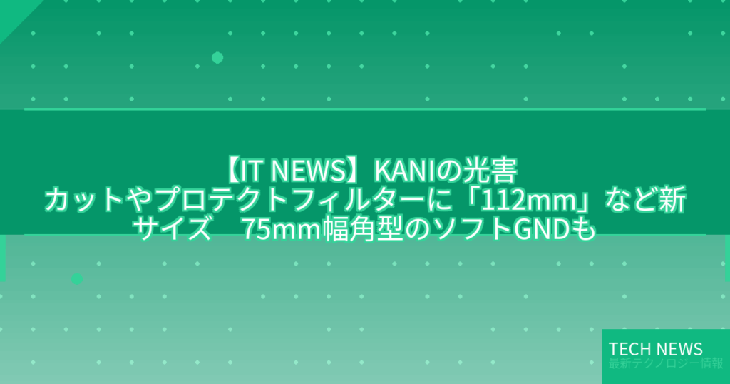 【IT NEWS】KANIの光害カットやプロテクトフィルターに「112mm」など新サイズ 75mm幅角型のソフトGNDも