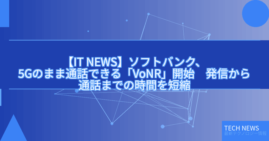 【IT NEWS】ソフトバンク、5Gのまま通話できる「VoNR」開始 発信から通話までの時間を短縮