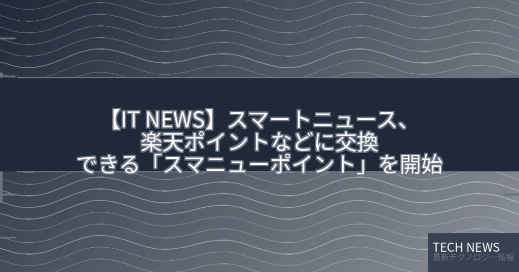 【IT NEWS】スマートニュース、楽天ポイントなどに交換できる「スマニューポイント」を開始