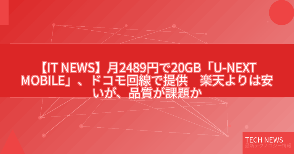 【IT NEWS】月2489円で20GB「U-NEXT MOBILE」、ドコモ回線で提供 楽天よりは安いが、品質が課題か