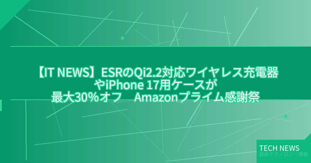 【IT NEWS】ESRのQi2.2対応ワイヤレス充電器やiPhone 17用ケースが最大30%オフ Amazonプライム感謝祭