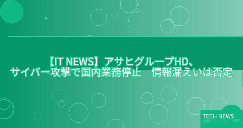 【IT NEWS】アサヒグループHD、サイバー攻撃で国内業務停止 情報漏えいは否定