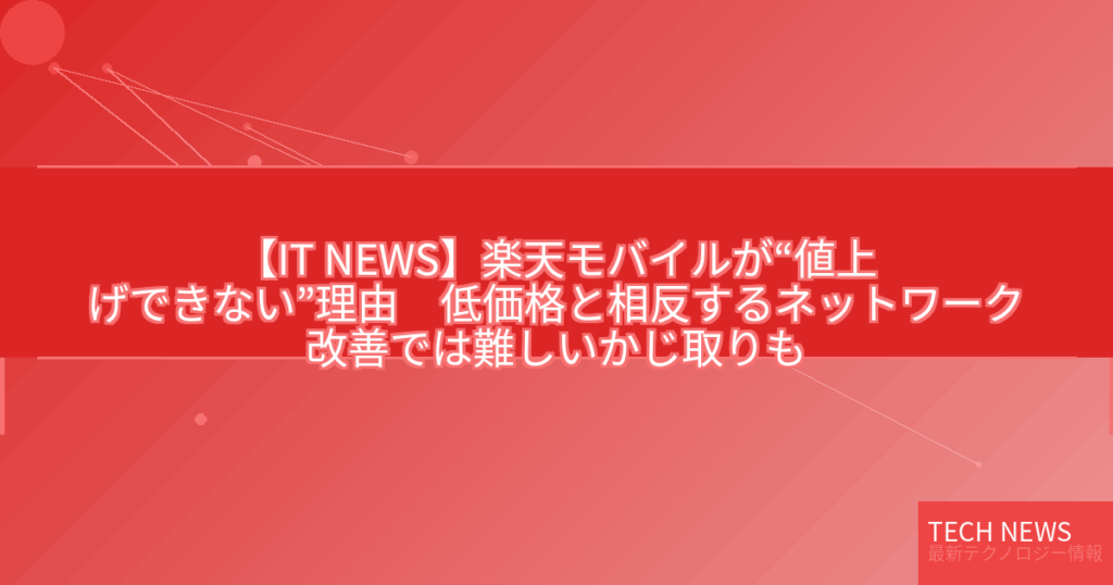 【IT NEWS】楽天モバイルが“値上げできない”理由 低価格と相反するネットワーク改善では難しいかじ取りも