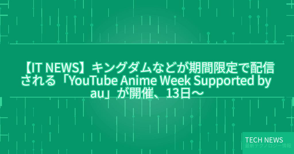 【IT NEWS】キングダムなどが期間限定で配信される「YouTube Anime Week Supported by au」が開催、13日~