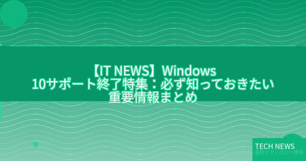 【IT NEWS】Windows 10サポート終了特集:必ず知っておきたい重要情報まとめ
