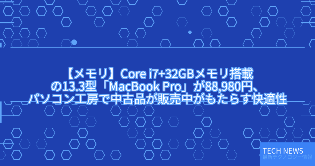 【メモリ】Core i7+32GBメモリ搭載の13.3型「MacBook Pro」が88,980円、パソコン工房で中古品が販売中がもたらす快適性