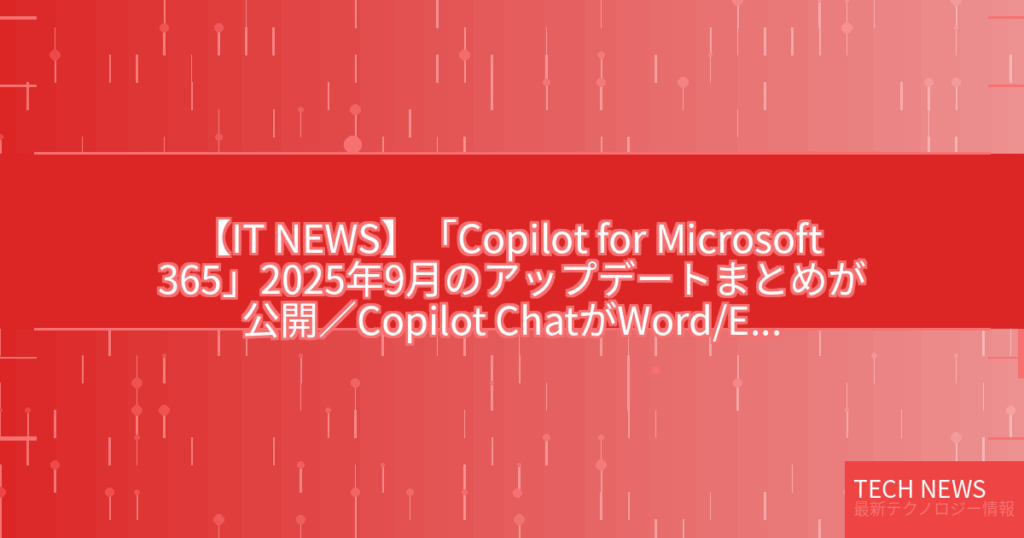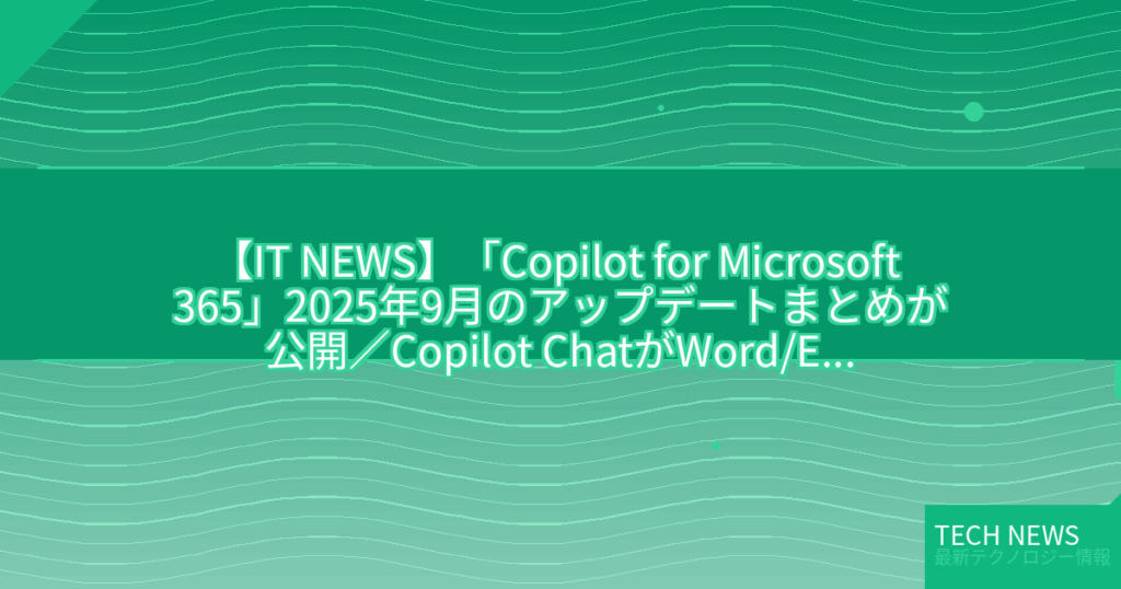【IT NEWS】「Copilot for Microsoft 365」2025年9月のアップデートまとめが公開/Copilot ChatがWord/Excel/PowerPoint/Outlook/OneNoteで利用可能に