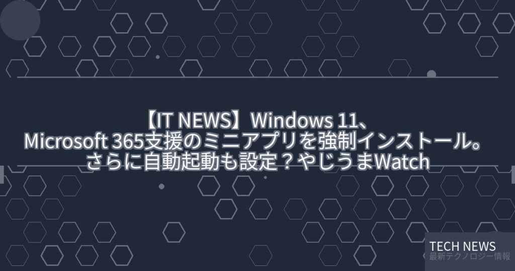 【IT NEWS】Windows 11、Microsoft 365支援のミニアプリを強制インストール。さらに自動起動も設定?やじうまWatch