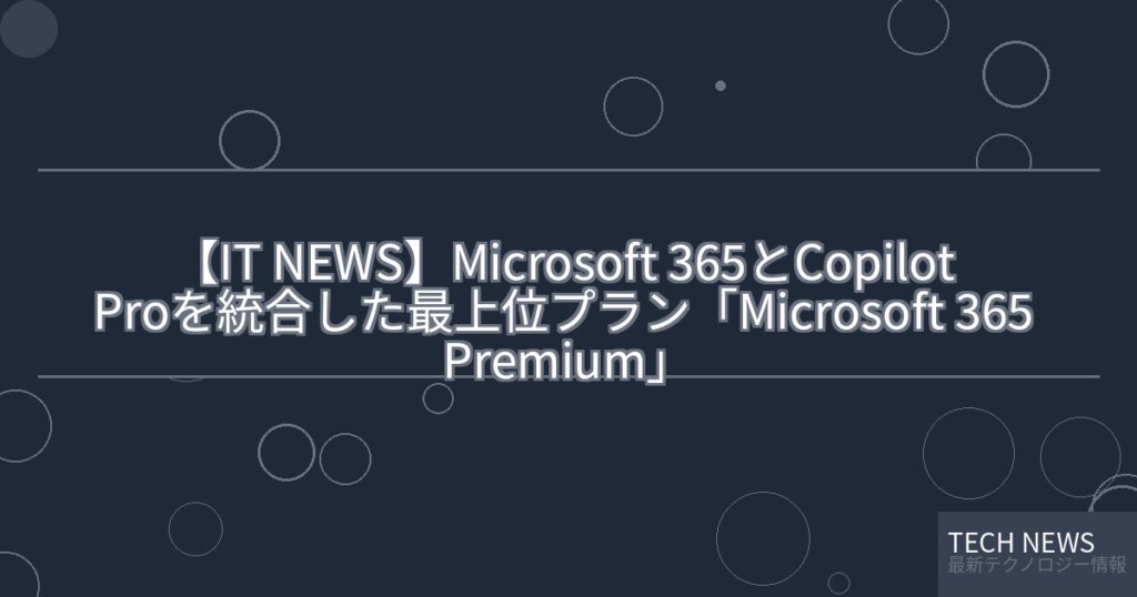 【IT NEWS】Microsoft 365とCopilot Proを統合した最上位プラン「Microsoft 365 Premium」